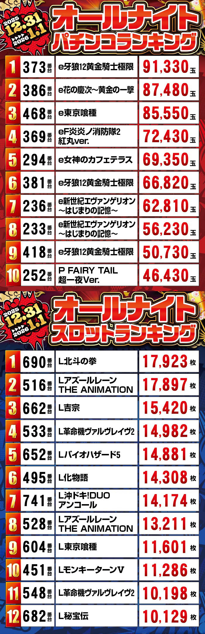 | 台数 | パチンコ:475台 / スロット:527台 |